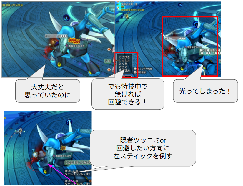 これを一切ケアせずに特技モーションを確定させてしまうと、100%避けれなくなってしまいます。
